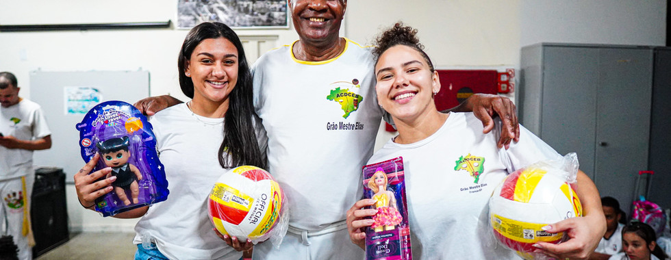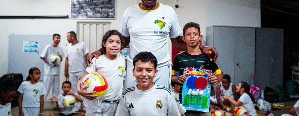 ASSOCIAÇÃO DE CAPOEIRA PROMOVE INTEGRAÇÃO E DISTRIBUI BRINQUEDOS NA EMEB ANOR RAVAGNANI